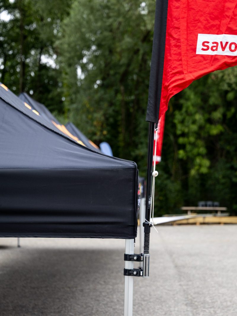 Le 𝐬𝐮𝐩𝐩𝐨𝐫𝐭 𝐝’𝐨𝐫𝐢𝐟𝐥𝐚𝐦𝐦𝐞 vient se poser en toute simplicité sur les pieds de nos tentes pour rehausser vos drapeaux. 🚩